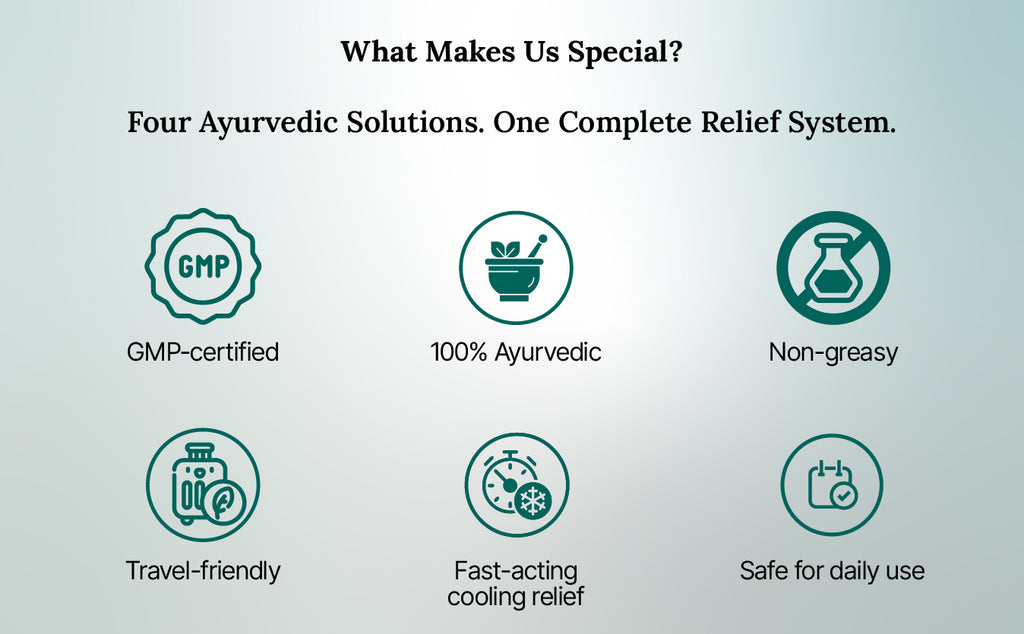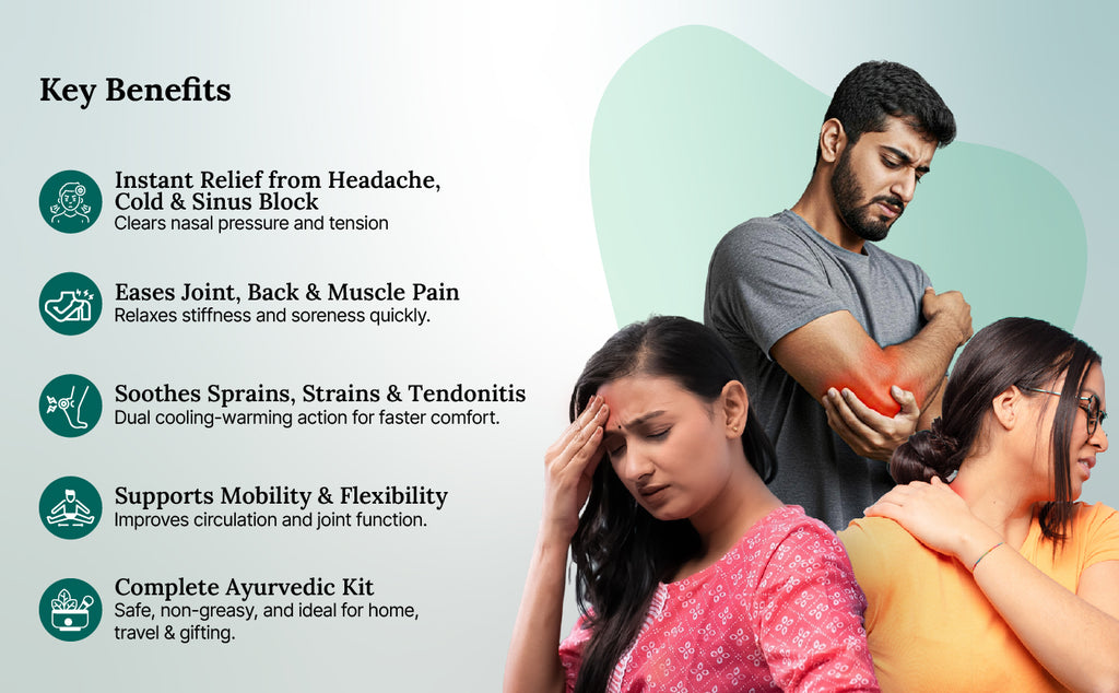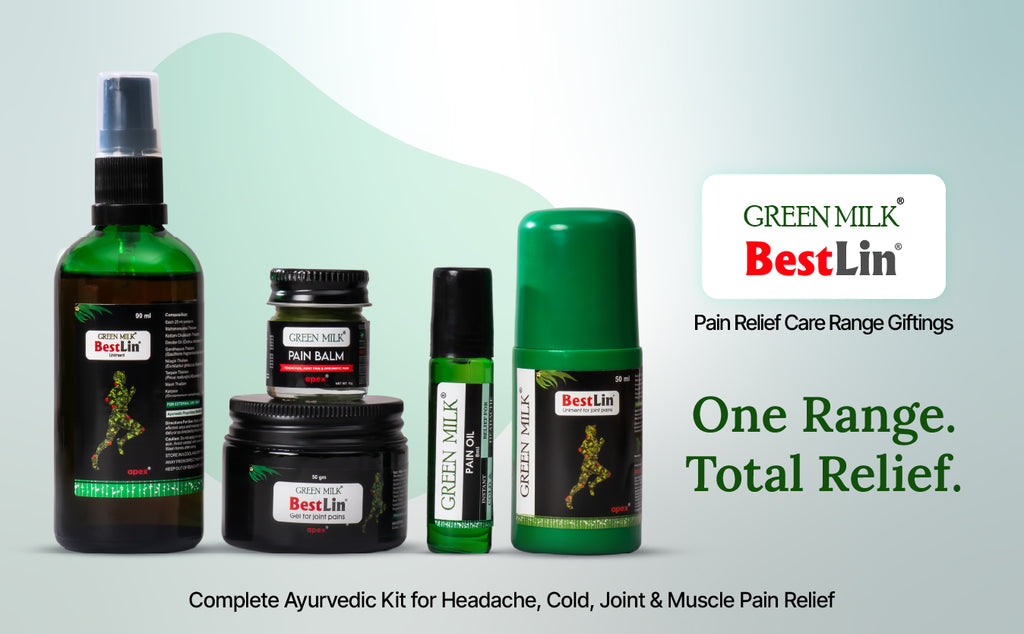 Green Milk Concepts 5-in-1 Ayurvedic Pain Relief Combo brings together five targeted pain-relief formats inspired by traditional Ayurvedic wisdom. Each product works in a unique way - warming oils for deep joints, fast-absorbing gels for muscles, roll-ons for instant relief and liniments for active recovery.