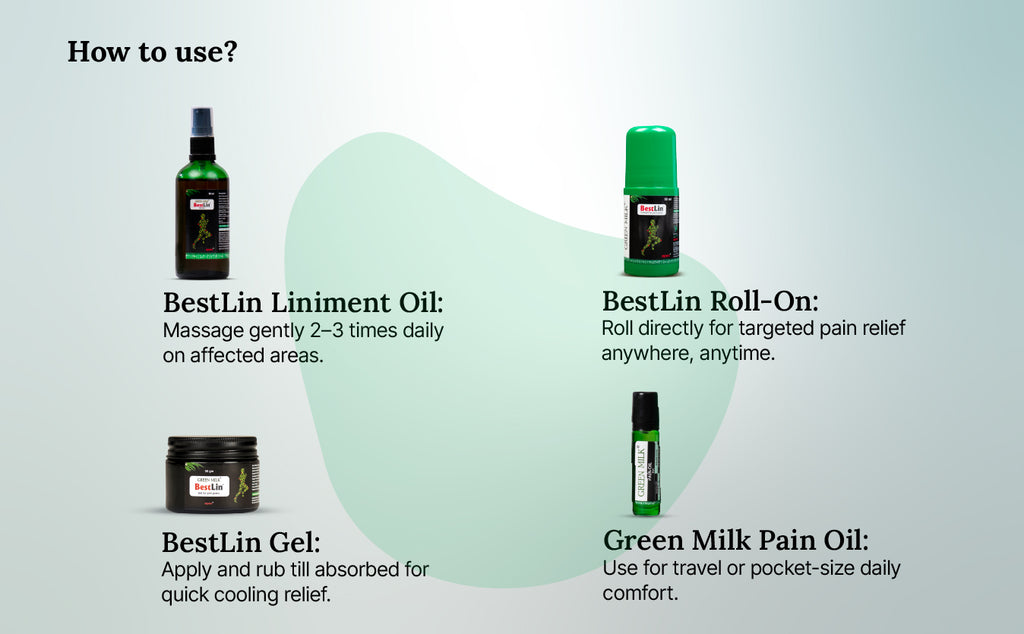 Regular use of ayurvedic pain relief oil, pain relief gel and pain roll-on helps manage joint pain, knee stiffness and muscle discomfort naturally. This combo works as a daily pain management solution for those searching for the best ayurvedic oil for knee pain.