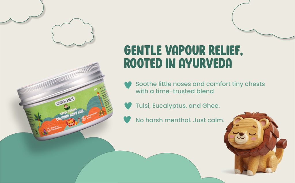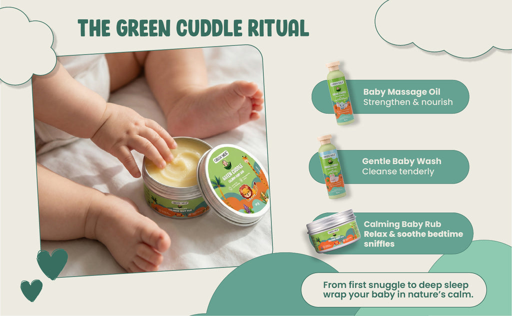 When your little one feels congested or uneasy, Green Cuddle Calming Baby Rub is here to provide natural comfort — inspired by age-old Indian remedies for babies.