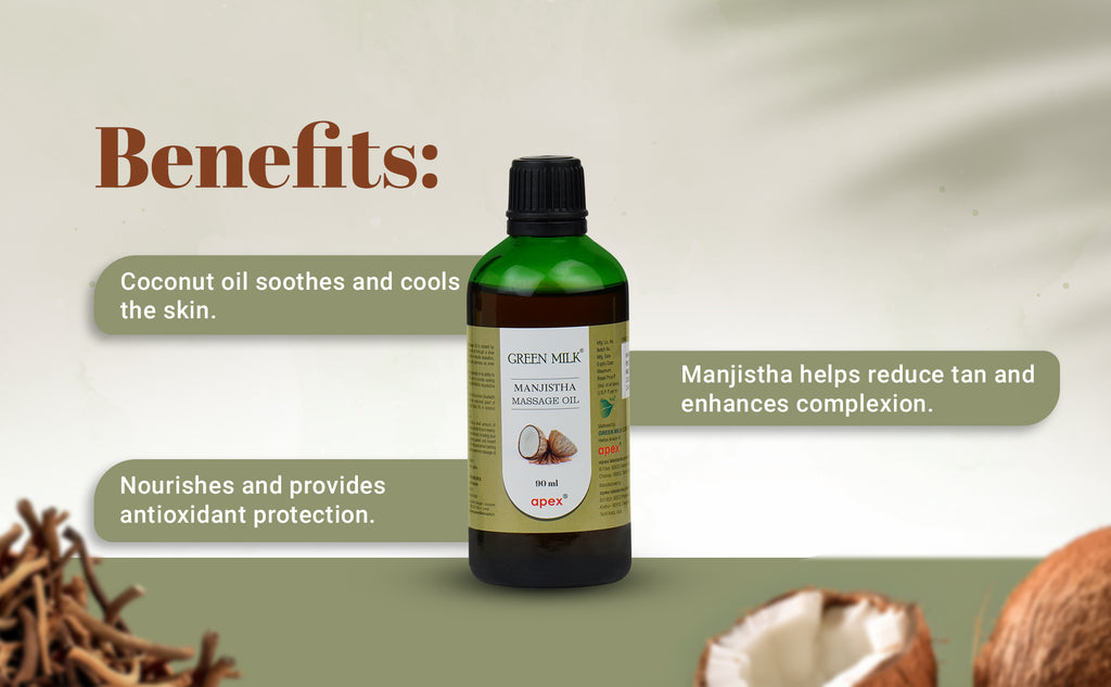 Inspired by classical Ayurvedic oil preparation methods, Green Milk Manjistha Massage Oil is crafted by gently infusing Manjistha (Rubia cordifolia) in pure coconut oil through a slow heating process to preserve the herb’s natural properties.