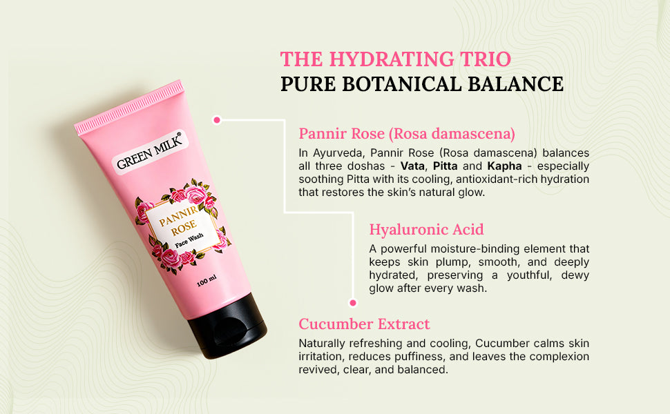 Pannir Rose Face Wash offers a gentle yet effective cleanse, removing impurities without disrupting your skin’s natural moisture balance. Infused with Rose (Rosa Damascena), it hydrates and soothes the skin, promoting a healthy, refreshed feeling. Hyaluronic Acid deeply moisturizes, ensuring your skin stays hydrated even after cleansing. This face wash is formulated to leave your skin soft and glowing, with no dryness or tightness. It’s perfect for daily use and is suitable for all skin types, providing a gentle yet thorough cleanse. Free from harsh chemicals, this face wash ensures a gentle, non-drying clean. Your skin will feel balanced and nourished with each use. Ideal for those seeking a clean, hydrated, and glowing complexion, this face wash is a must-have for your skincare routine.