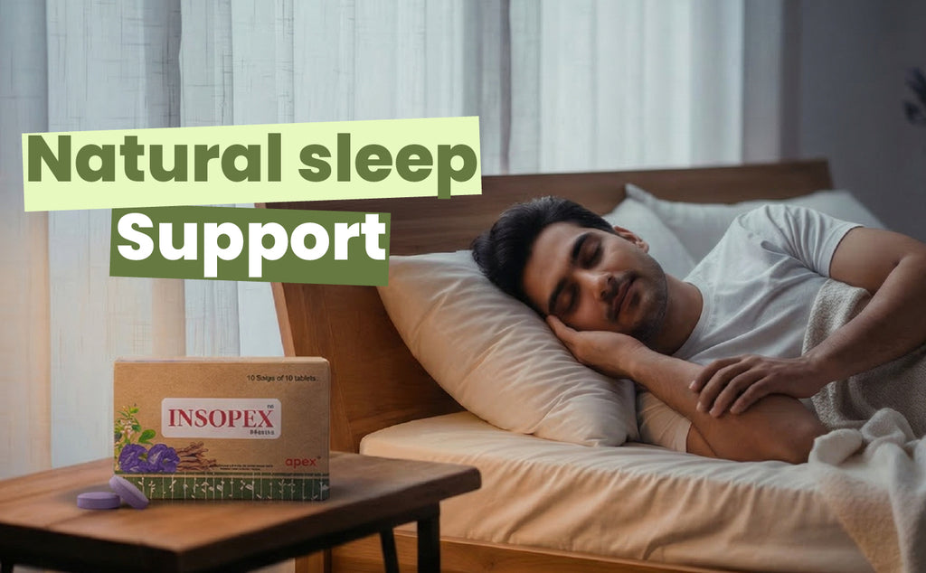 Insopex Tablets by Green Milk Concepts is a gentle, herbal sleep-support formula developed to support people who struggle with sleeplessness, disturbed sleep, restlessness or overactive thoughts at night. This carefully selected herbal blend includes —Tagara, Ashwagandha, Brahmi, Shankhpushpi and Jyotismati—all known for promoting relaxation, calmness and a peaceful nighttime experience.